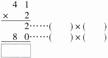 $\begin{array}{r} 41\\ ×\ \ \ 2\\ \hline 2\\ 80\\ \hline □ \end{array}$