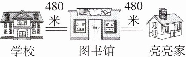 5 亮亮每天上学、放学都要经过图书馆,亮亮上学往返一次至少要走多少米?