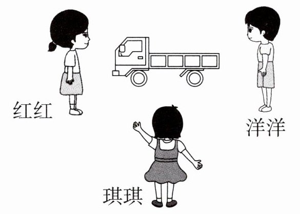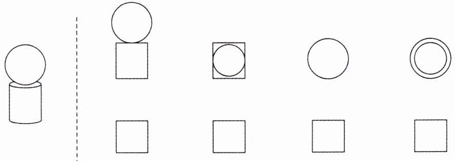 4 小敏从上面看下图左边的物体,哪幅图是她看到的?在$□$里画“√”。