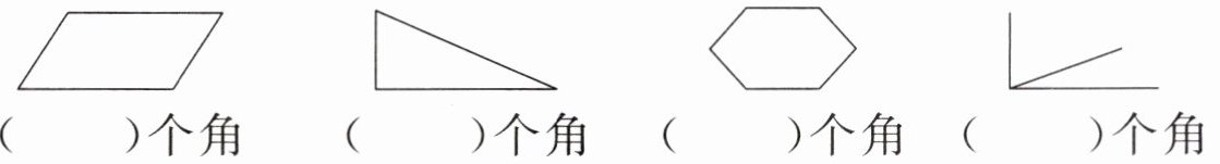 (2)数一数下面图形中分别有几个角。