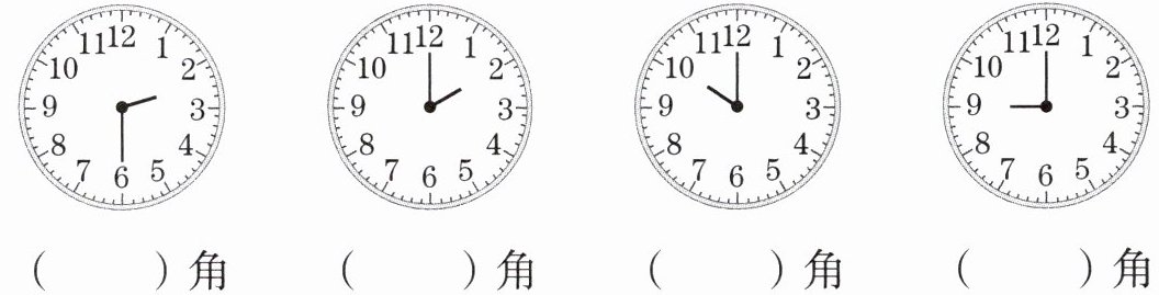 6. 下面钟面上时针和分针形成的角分别是什么角?