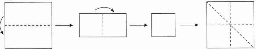 8. 如图,把一张正方形纸片先上下对折,再左右对折,然后展开斜着对折一次,最后展开。