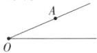 ②以点 $ O $ 为顶点,以射线 $ OA $ 为角的一条边,画出一个锐角。
