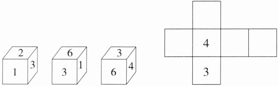 6 一个正方体六个面上分别写着数字 1~6,六个面的相互关系如下图。请在右面的展开图上填上其余四个面的数字。