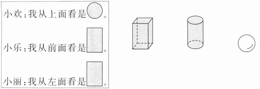 5 小欢、小乐和小丽观察同一个立体图形,根据他们的描述圈出他们观察的立体图形。