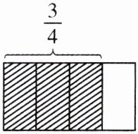 一个长方形被平均分成4个相等的小长方形,其中3个小长方形被阴影覆盖,代表了分数$\frac{3}{4} $。