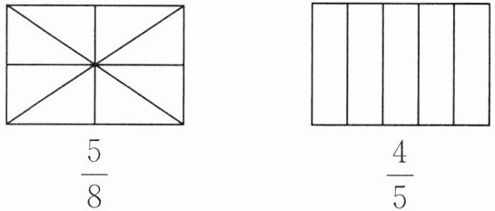第一个图形:将长方形分成8等份,涂5份,表示 $\dfrac{5}{8}$。