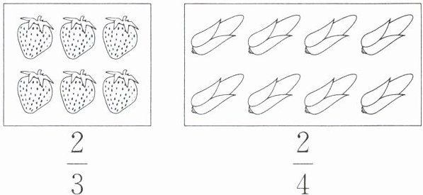 )(选填“相同”或“不同”)。(4) 一盒蛋糕共有8块,洋洋吃掉了它的$\frac{1}{4}$,盒子里还有(