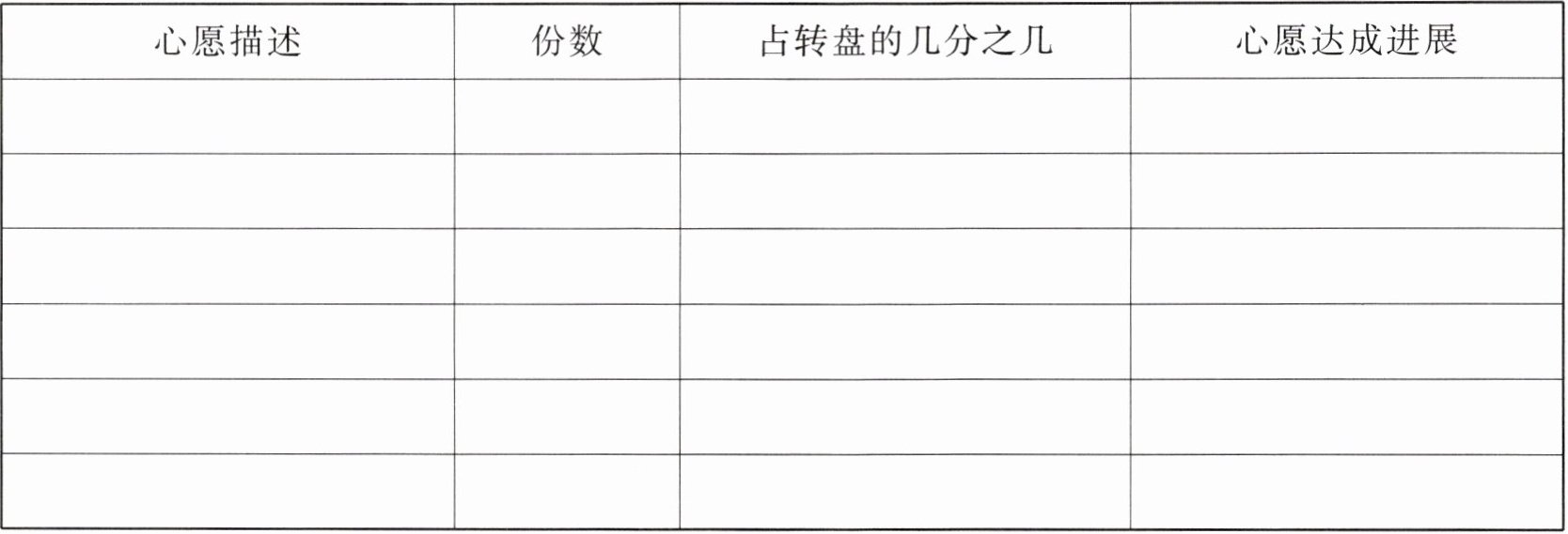 你是不是有很多心愿?让我们尝试把它们列出来,整理到转盘里,做成一个“心愿转盘”,等待心愿达成的一天吧!