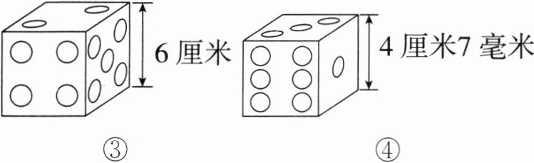 6. 同学们制作了4个大小不同的正方体骰子,它们的高度如下,怎样搭配才能将这4个骰子放进2个高1分米5厘米的收纳盒(收纳盒一层只放一个骰子)内?(仅考虑高度)