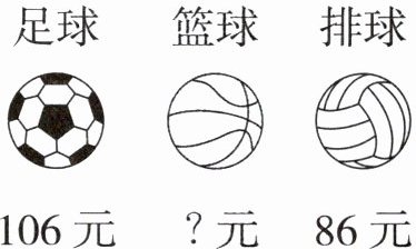 (3)文体组杨老师买了4个排球和一个篮球,一共花了530元。一个篮球多少钱?
