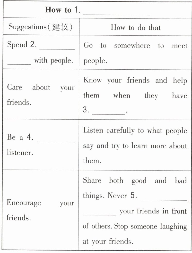 1.Have/Make Friends 2.more time 3.problems 4.good 5.laugh at