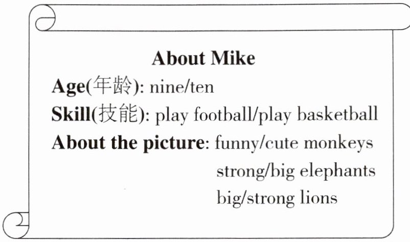 Ⅳ. 新同学 Mike 正在向大家介绍自己的一些基本情况。听短文,圈出与所听内容相符的一项。