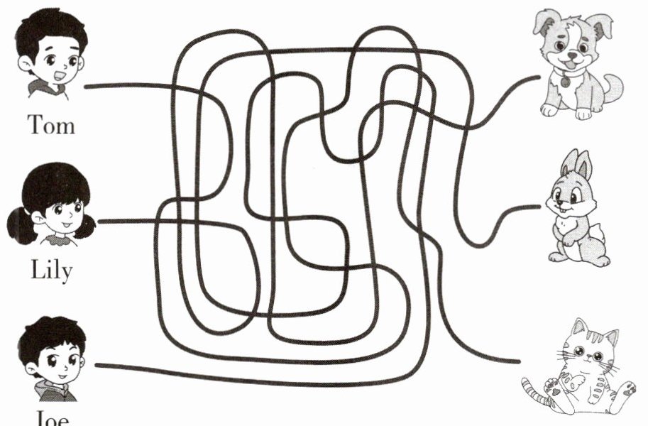 Ⅶ. 我爱养宠物。请帮小动物们找到自己的主人,将句子补充完整吧。