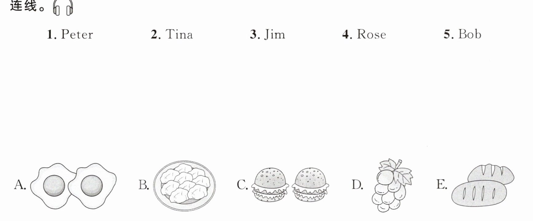 Ⅲ. Peter 正在向大家介绍他和朋友们喜欢的食物。听短文,将人名与对应的食物连线。