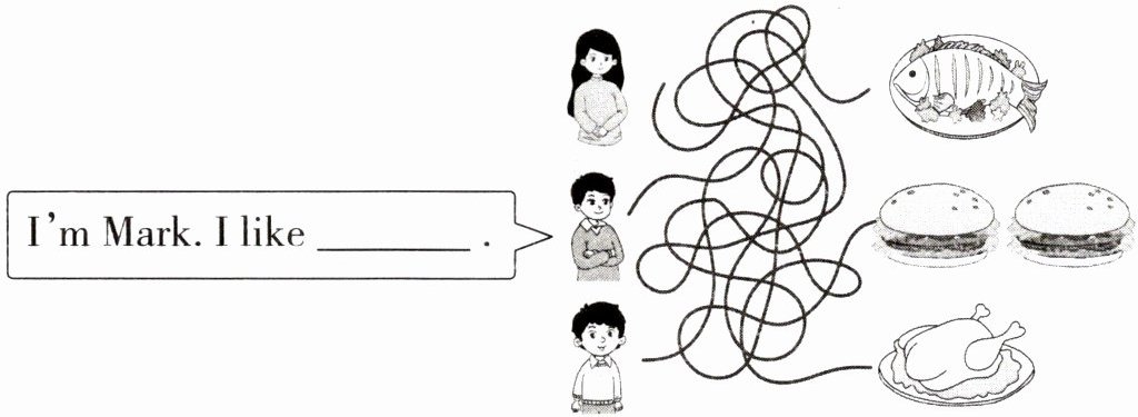 Ⅱ. 沿着线条描一描,找出 Mark 最喜欢的美食吧。