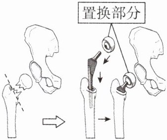 2. 如果膝关节已严重磨损,往往需要置换人工关节(如图)。其中的置换部位相当于人体关节中的(