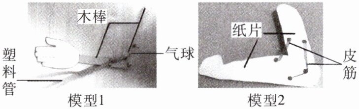绕关节活动。与模型2中的皮筋相比,气球更加形象,说明制作模型时,应选择恰当的材料。(2)模型1与模型2相比,因缺少人体结构中的