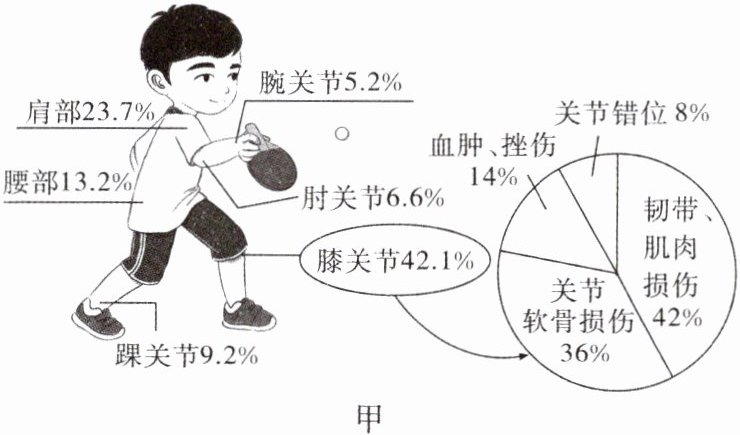 17. 为采取有效措施减少运动损伤,科研人员调查了青少年乒乓球运动员的损伤特征,结果如图甲。据图回答下列问题。