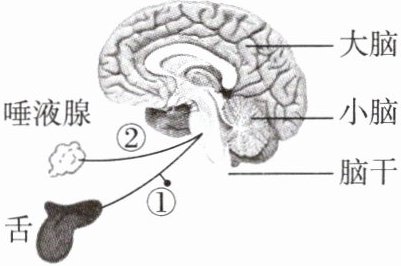 反射,请用图中文字、数字和箭头表示该反射活动的传导途径:舌→①→脑干→②→唾液腺