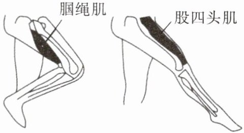 D.伸腿时,腘绳肌舒张,股四头肌舒张