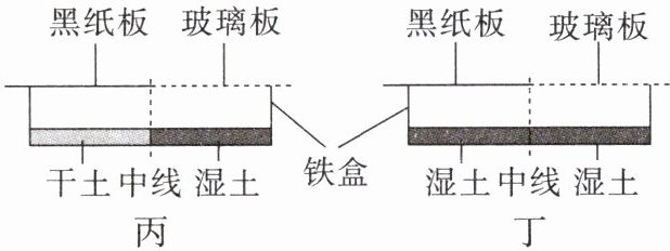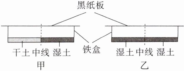 。(4)小明对甲同学的实验装置进行了如下改变:在空铁盒两侧分别放置了等量有机质含量丰富的湿土和有机质含量极少的湿土,其他条件都相同,实验步骤也相同。小明探究的问题是