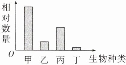 19. 如图表示某生态系统中构成一条食物链的四种生物在一段时间内的相对数量。下列说法正确的是(
