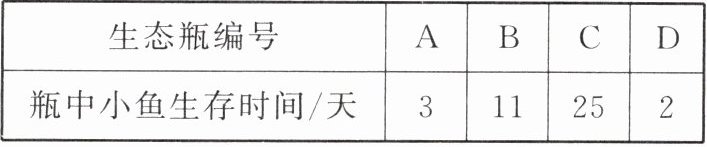 (3)D装置中,小鱼存活的时间比A装置中的存活时间短,最可能的原因是