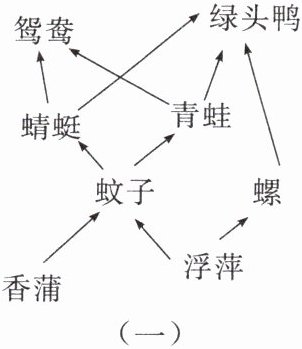 和非生物部分。(2)图(一)为湿地公园内部分生物构成的食物网,绿头鸭等生物所需能量的根本来源是