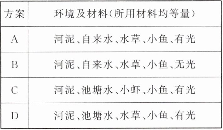 13.(2024 德州)某生物学兴趣小组为探究生态系统的稳定性,设计出四种密闭型生态瓶的制作方案。下列方案中小鱼存活时间最长的是(
