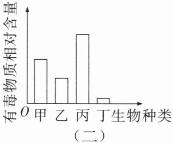 14. 图(一)为某草原生态系统中的食物链和食物网,图(二)为图(一)中某条食物链各生物体内有毒物质的相对含量。请据图回答问题。