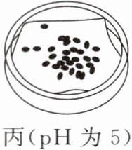 ②每天在甲中喷洒一定量的清水,在乙中喷洒等量 pH 为 3 的“模拟酸雨”,在丙中喷洒等量 pH 为 5 的“模拟酸雨”。