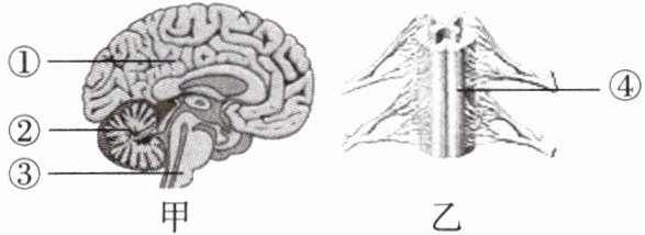 (填“是”或“否”)。(3)图中甲和乙组成了人体的脊髓,它与