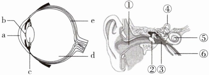21. (10分)春节是我国的传统节日之一,全国各地都以不同的活动来庆祝春节,如贴春联、燃放烟花爆竹(部分地区)等活动,如图是眼和耳的结构模式图,请据图回答下列问题。