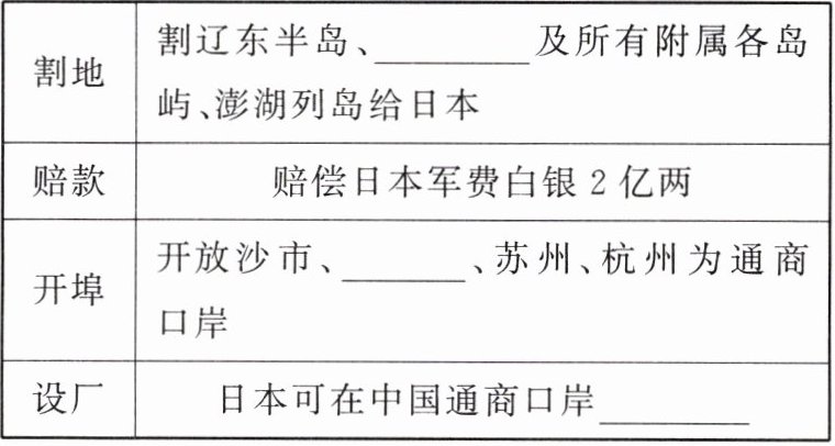 (1)签订:1895年3月,清政府派______为议和全权大臣,前往日本马关议和。