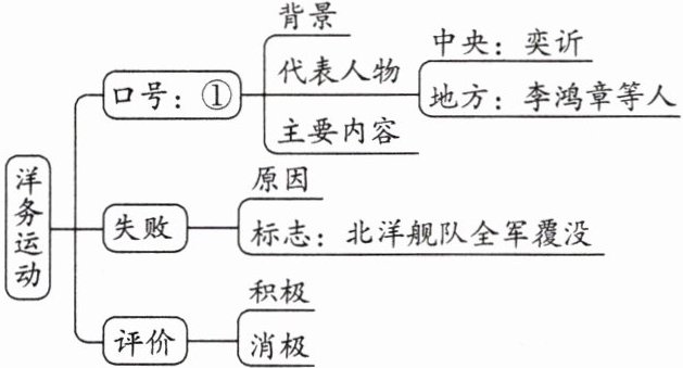 探究1:结合所学知识,写出材料一图中①处的内容。分析洋务运动失败的原因。
