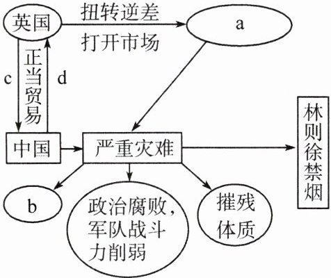 7. 厘清历史联系是历史学习的常用方法之一。下图中a、b、c、d处对应的内容依次为( )