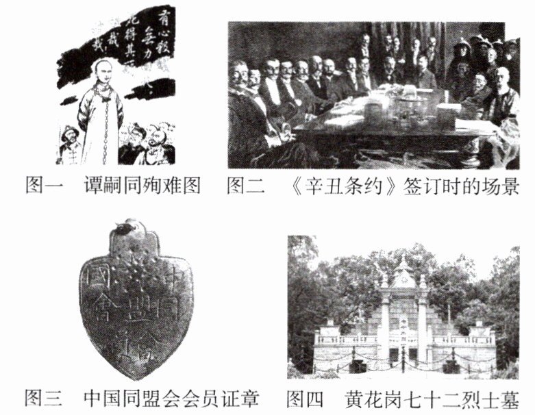 (1)图一:戊戌变法失败,说明资产阶级改良道路在当时的中国行不通。图二:《辛丑条约》签订后,清政府沦为帝国主义统治中国的工具,国内革命情绪日趋高涨。图三:中国同盟会的成立,有力推动了全国革命运动的发展。图四:广州起义虽然失败,但革命党人不屈不挠的精神和视死如归的英雄气概,极大地鼓舞了全国人民的斗志。