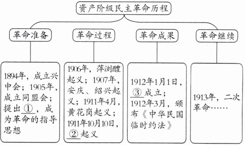 9. 20世纪初的中国,民主革命逐渐成为不可阻挡的时代潮流。历史老师以“资产阶级民主革命”为主题,设计了学习任务单,请你完成相关学习任务。