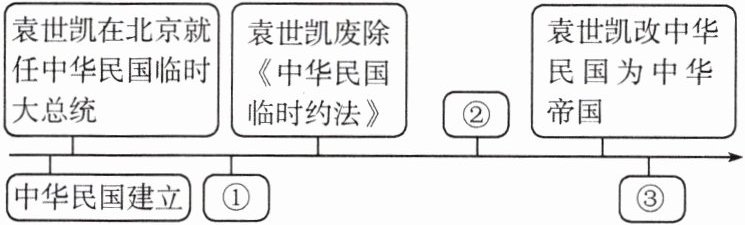 7. 袁世凯上台后,公然复辟帝制。以孙中山为首的革命党人同全国人民与其展开了不懈斗争。以下思维导图中,①②③处对应的事件是( )
