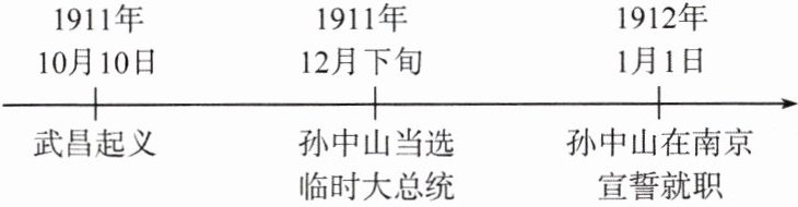A 解析:1911年10月10日,革命党人在湖北武昌发动起义。武昌起义胜利后,各省纷纷响应。1911年12月下旬,独立各省代表在南京集会,选举孙中山为临时大总统。1912年1月1日,孙中山在南京宣誓就职,宣告中华民国临时政府成立,A项正确。北洋政府是指北洋军阀在政治格局中占主导地位的政府,排除B项;《中华民国临时约法》是在1912年3月颁布的,排除C项;护国战争在1915年底爆发,排除D项。