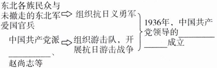 东北各族民众与未撤走的东北军爱国官兵→组织抗日义勇军