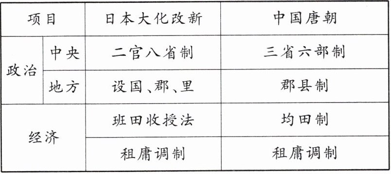 |项目|日本大化改新|中国唐朝|
