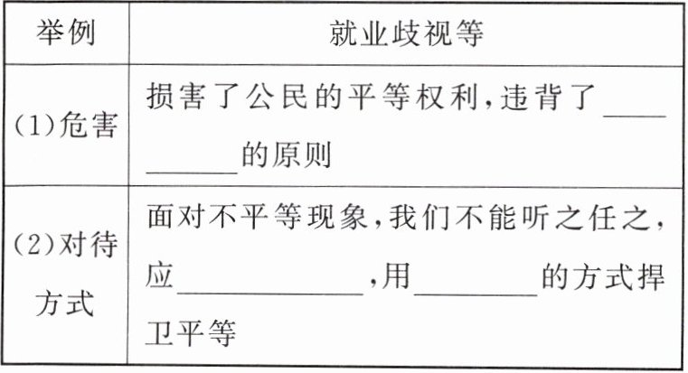 |(2)对待方式|面对不平等现象,我们不能听之任之,应______,用______的方式捍卫平等|