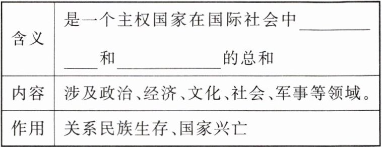 |含义|是一个主权国家在国际社会中____和____的总和|