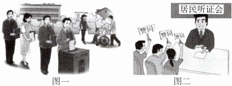(1)图一、图二两幅漫画中公民行使民主权利的形式分别是什么?