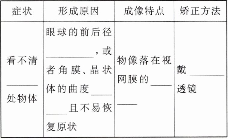 1. 晶状体曲度加大,可以看清近处物体;晶状体曲度减小,可以看清远处物体。(