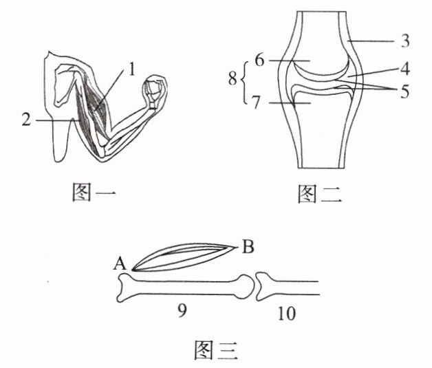 D.图三中A、B表示骨骼肌两端的肌腱,B应连接在10上面
