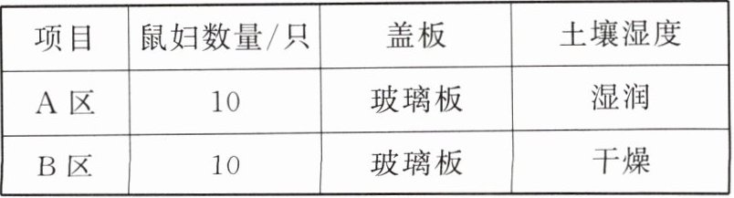 |项目|鼠妇数量/只|盖板|土壤湿度|
