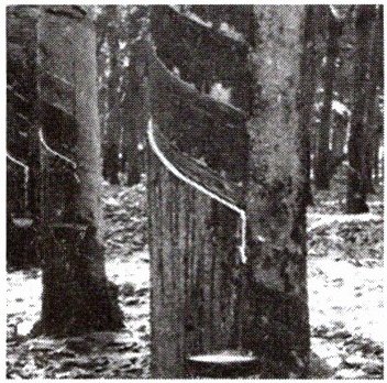 你见过橡胶工人割胶吗? 下图为割胶图片。